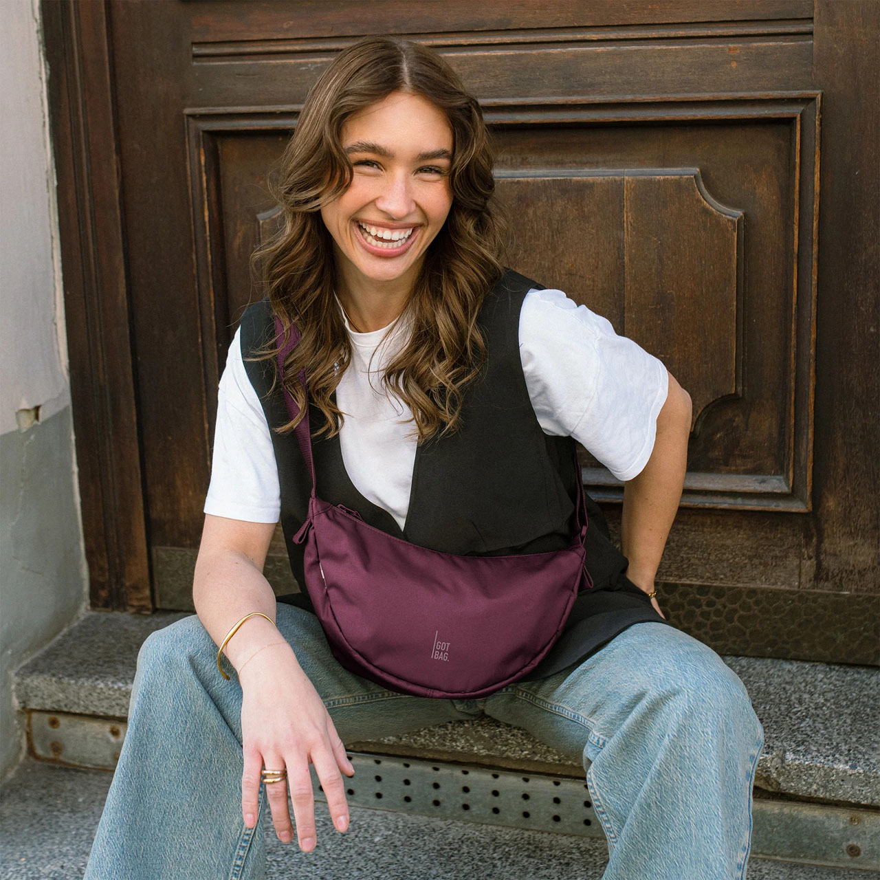 Weich, anschmiegsam und wasserabweisend: Die Moon Bag small in kraken (weinrot) von Got Bag lässt sich dank verstellbarem Schulterriemen variabel tragen und schmiegt sich durch die runde Form und das weiche Material an Deinen Körper an. Dieses Raumwunder mit 3,5 Litern Volumen wirst du lieben – to the moon and back.