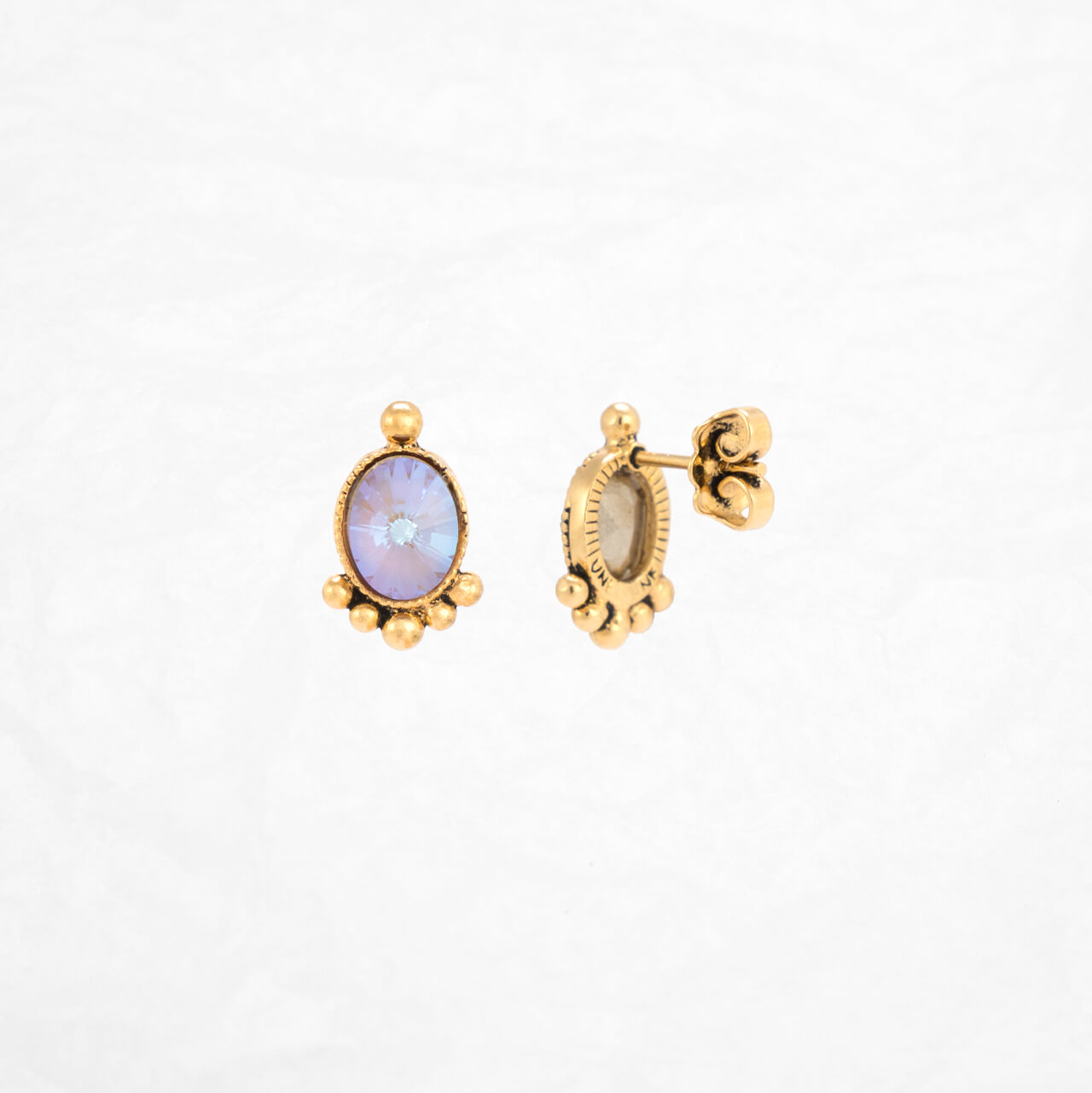 Herzige, klassische Ohrstecker von Une Ligne: Der ovale Swarovski-Stein in cappucino delight ist in eine vergoldete Fassung mit einem feinen Rand eingebaut. Unterhalb des Steins sind fünf kleine Kugeln angebracht, welche das elegante Bild vervollständigen. Der Stein hat die Masse 6x8mm, mit dem Rand 9x13mm. Die Vergoldung in 18 Karat Gold ist in 3 Mikron galvanisch auf den nickelfreien Buntmetallkörper aufgetragen.