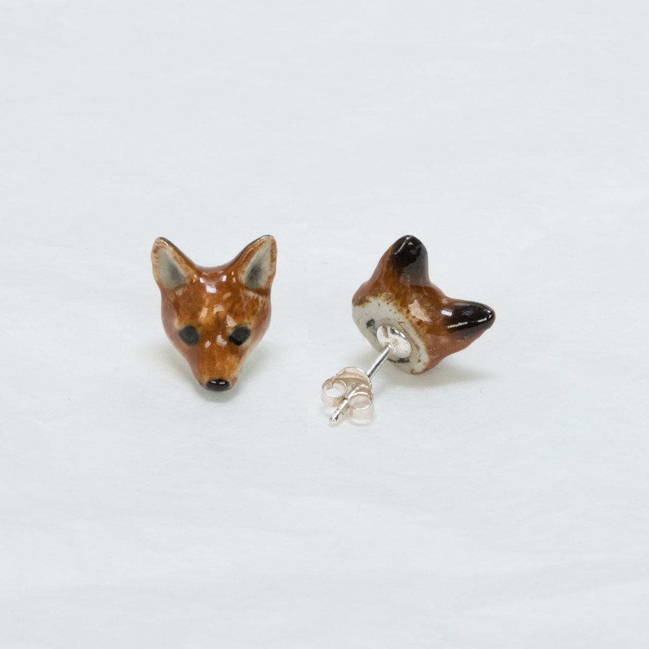 Ohrstecker mit kleinen, handbemalten Füchsen aus Porzellan, nickelfrei. Grösse ca. 16mm, inkl. Kartonböxli